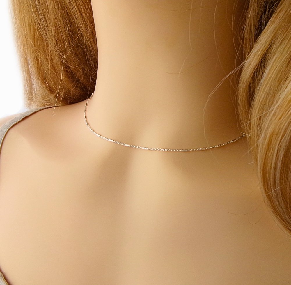 Bracelet multi tour femme ou choker en argent massif, Féminin et délicat avec sa chaine fine et fantaisie