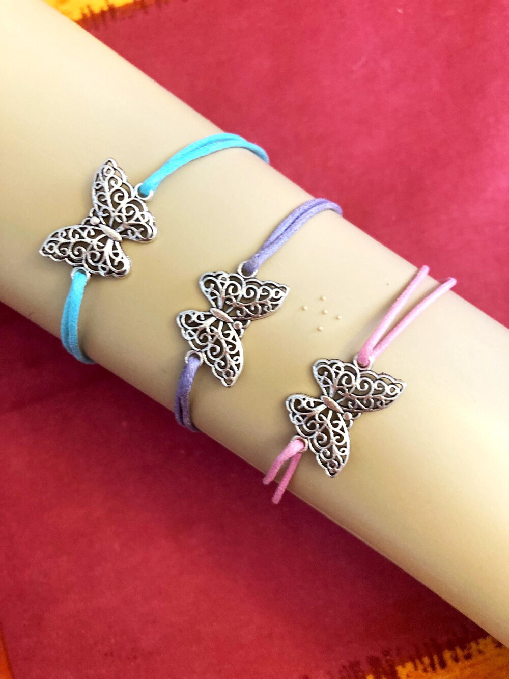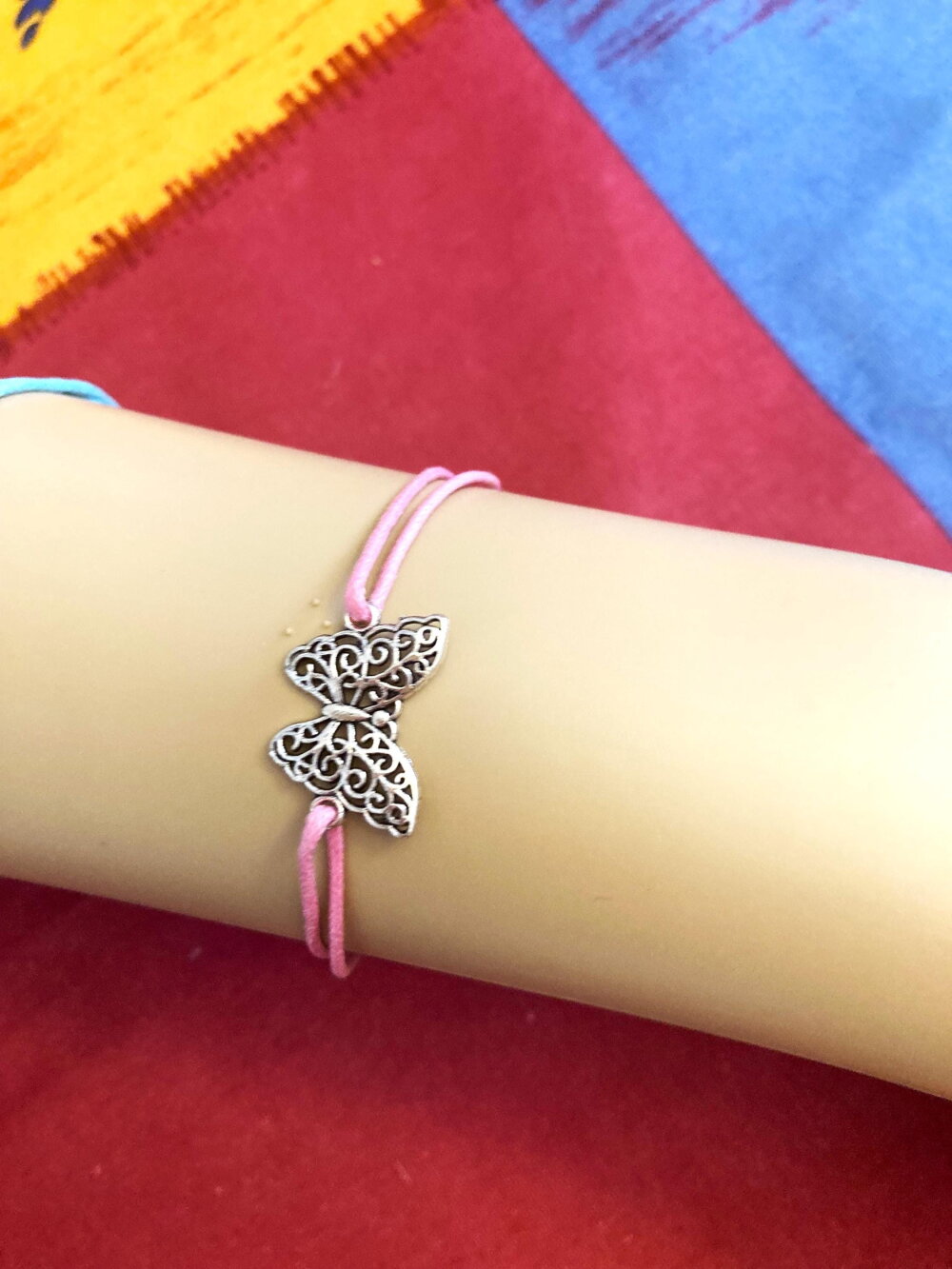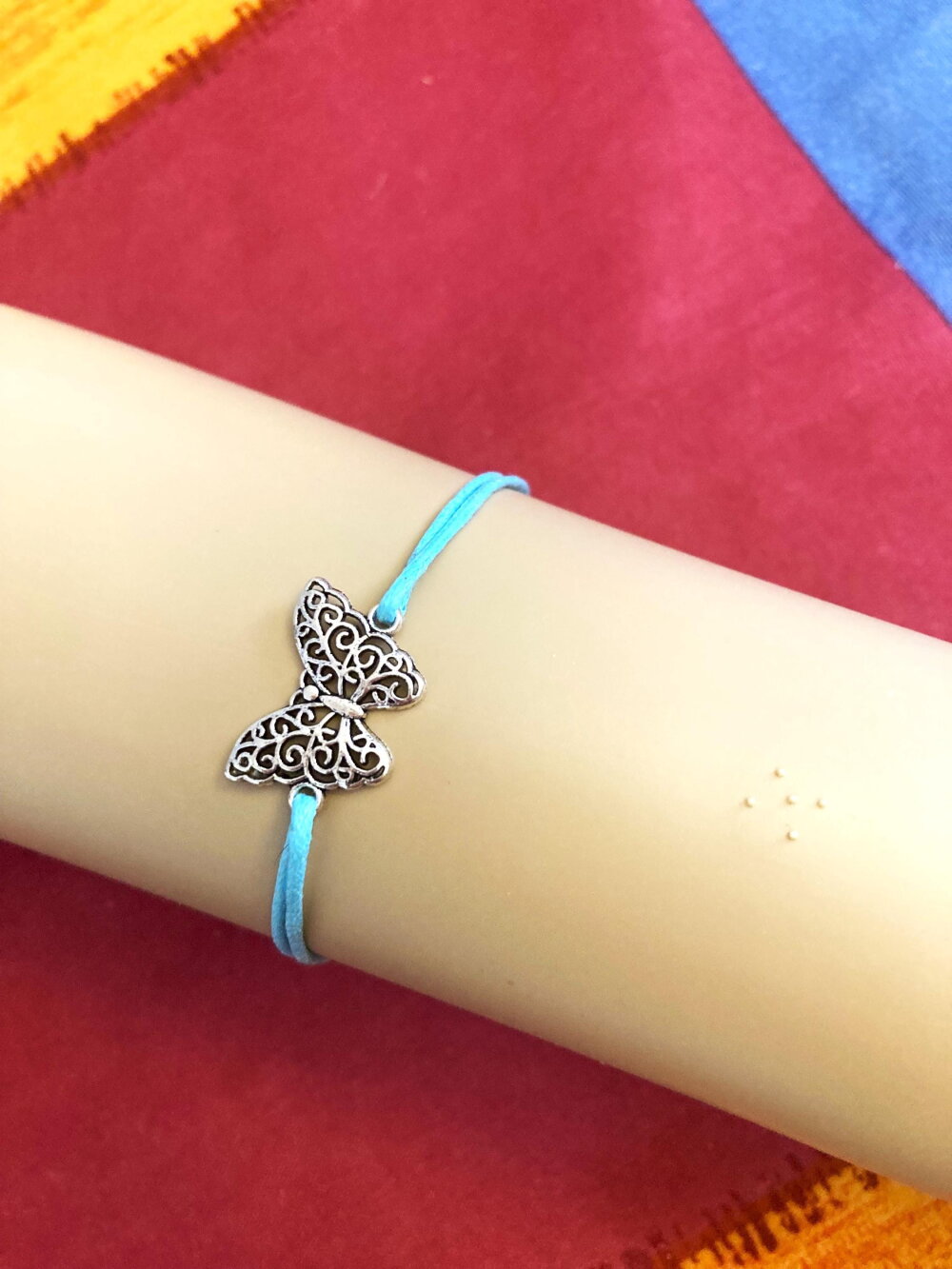 Bracelet papillon tendance cordon coton couleur au choix réglable délicat tendance Bijou femme fillette.