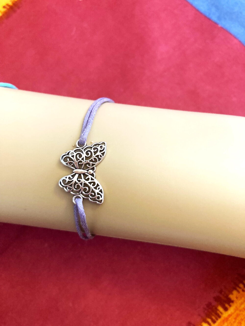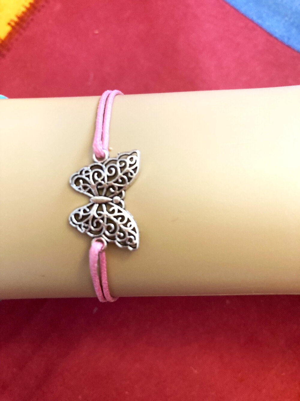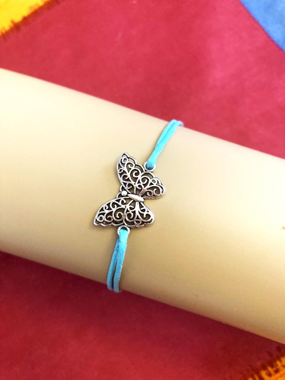 Bracelet papillon tendance cordon coton couleur au choix réglable délicat tendance Bijou femme fillette.