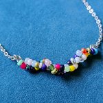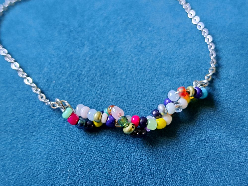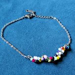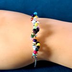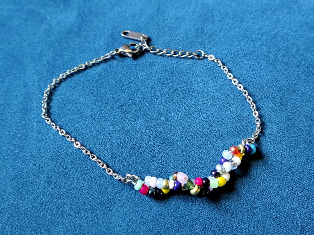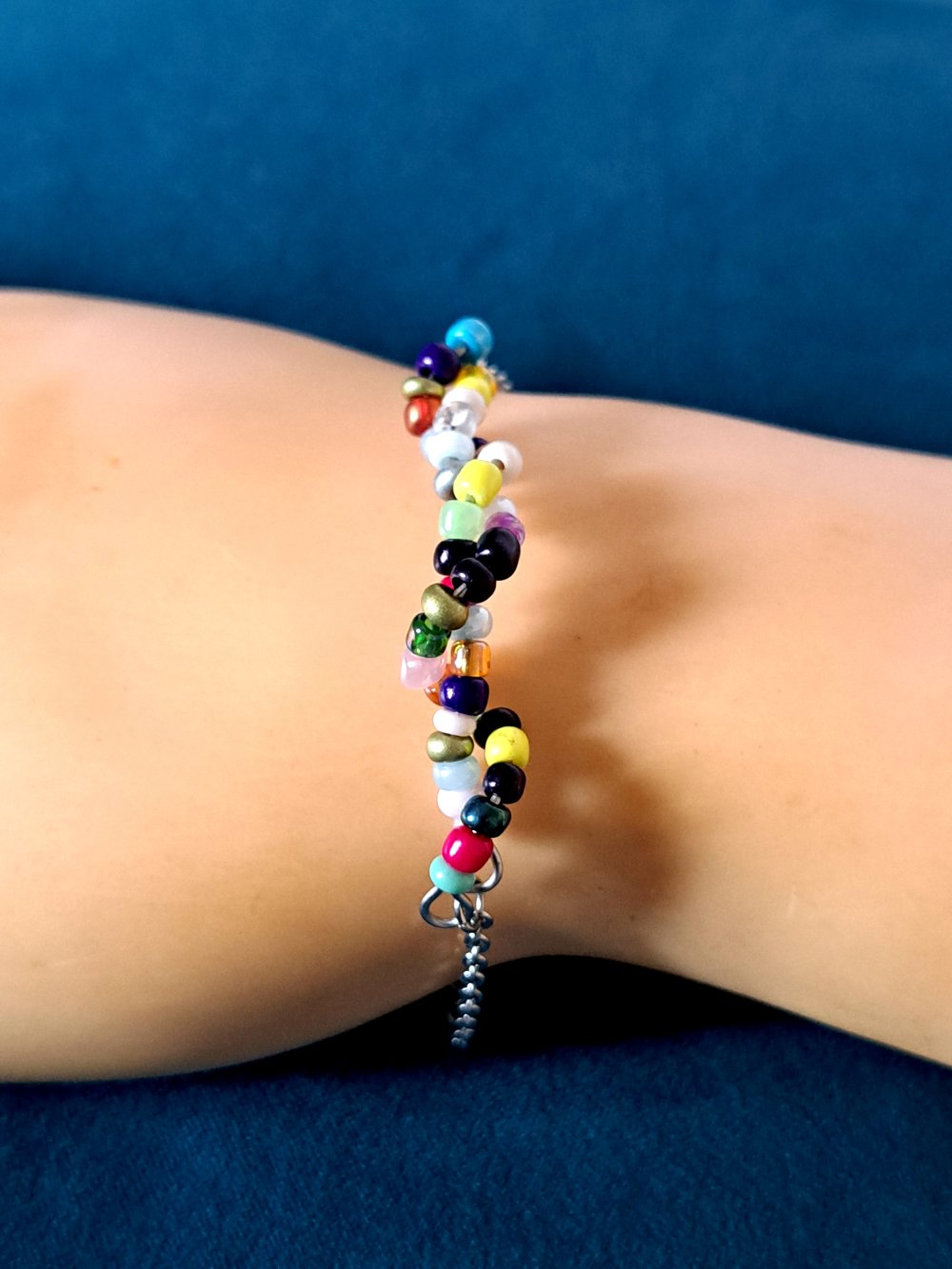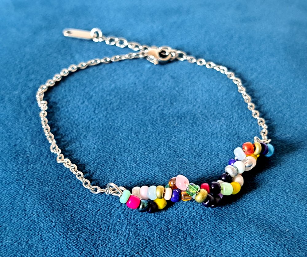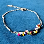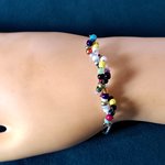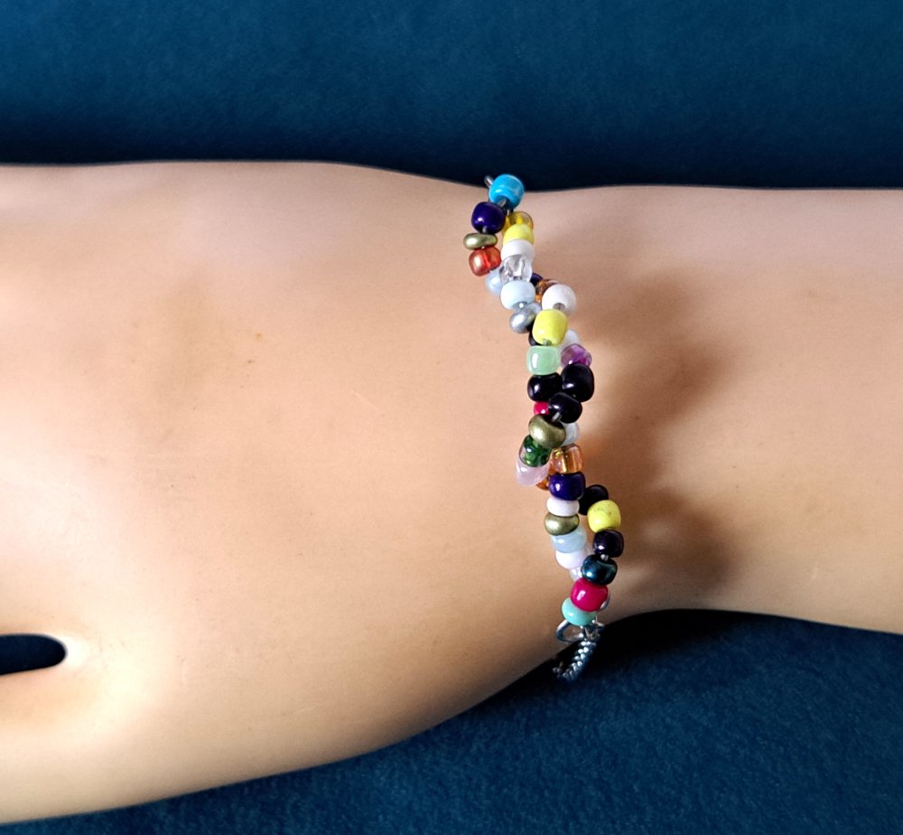 bracelet perles en verre multicolore, chaîne, fermoir en métal acier Inoxydable argenté