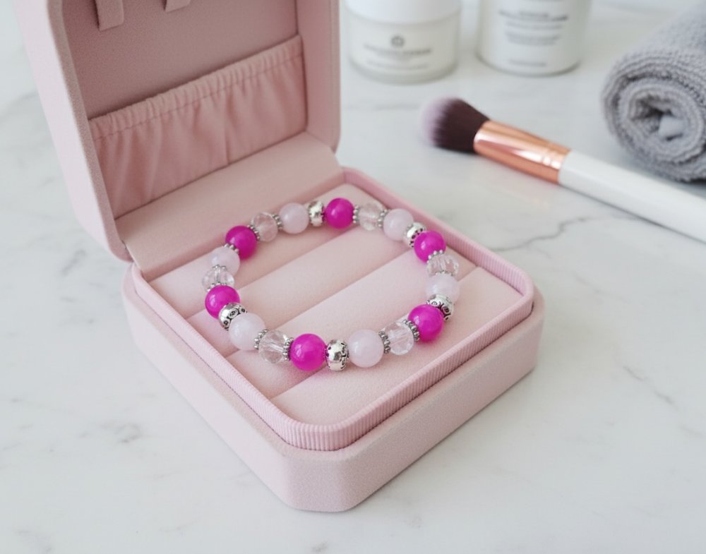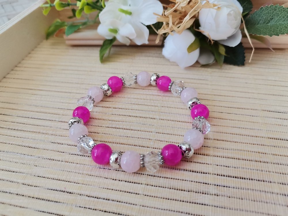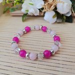 Bracelet perles en verre rose , fuchsia et cristal
