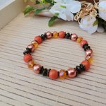 Bracelet sur fil élastique avec perle fantaisie de couleur orange de 8 mm et apprêts de couleur bronze