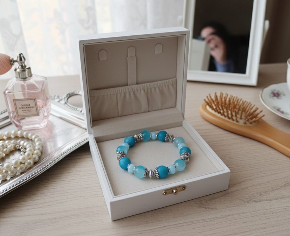 Bracelet perles jade bleue