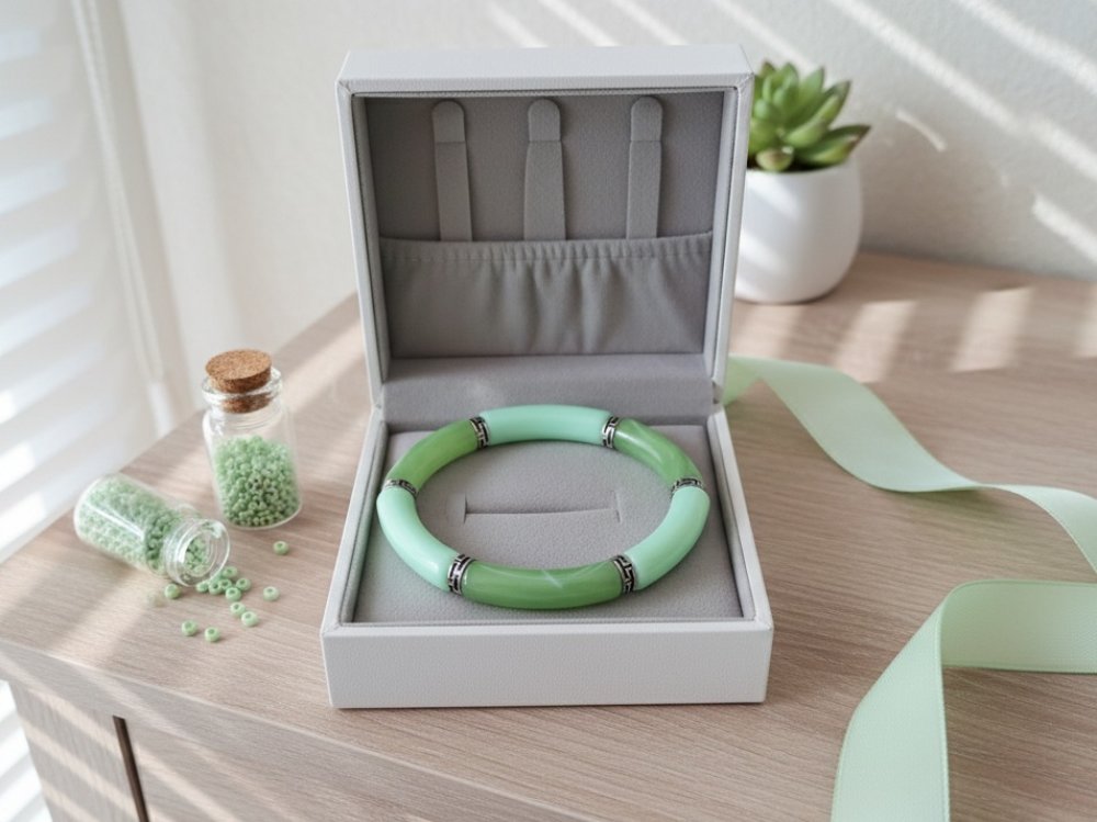 Bracelet sur fil élastique avec perles tubes incurvées et perles métal intercalaires 8 mm de couleur argent mat