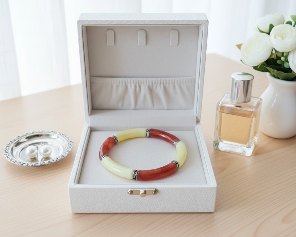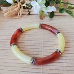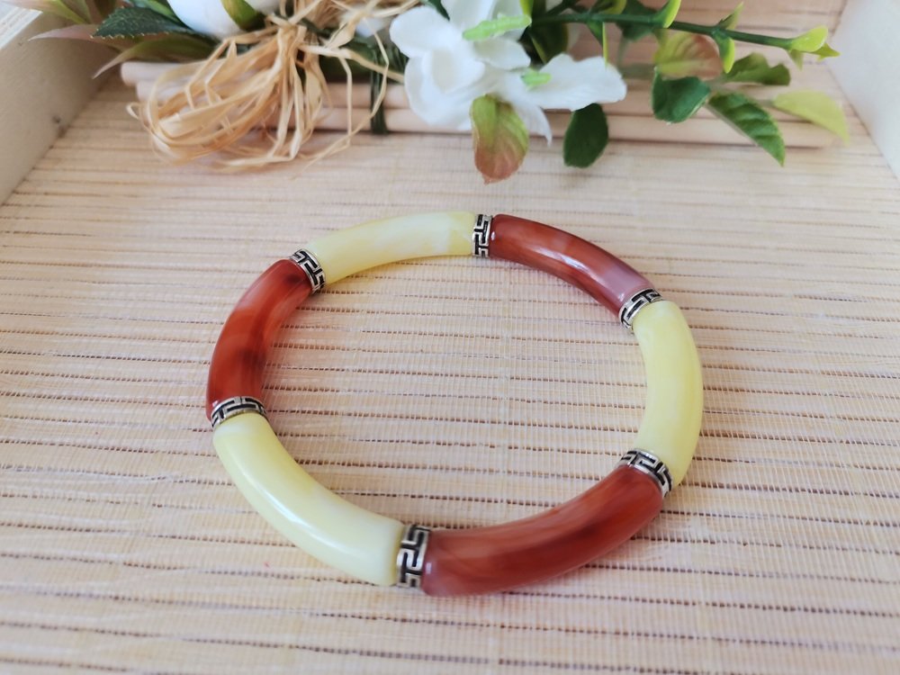 Bracelet sur fil élastique avec perles tubes incurvées et perles métal intercalaires 8 mm de couleur argent mat