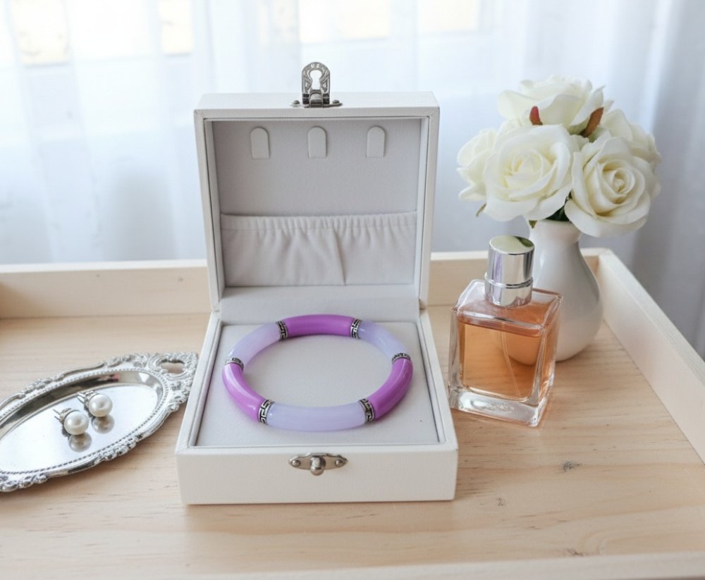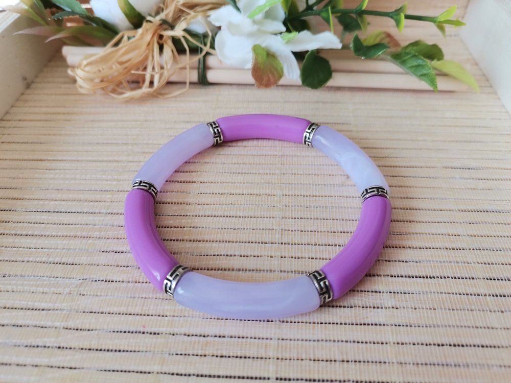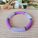 Bracelet sur fil élastique avec perles tubes incurvées et perles métal intercalaires 8 mm de couleur argent mat