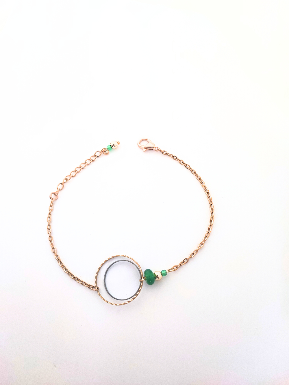 Bracelet simple et délicat, agrémenté de perles vertes.