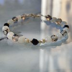 Ce bracelet raffiné associe des pierres naturelles de qualité AA : Pierre de Lune aux reflets nacrés et doux, Agate Veine de Dragon aux nuances marbrées fascinantes, Perles de cristal noir pour une touche d’élégance et de Perles ciselées et apprêts en Argent 925 véritable.