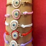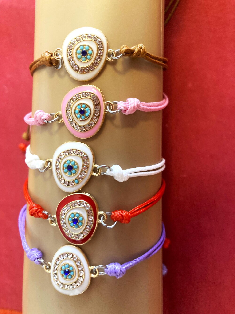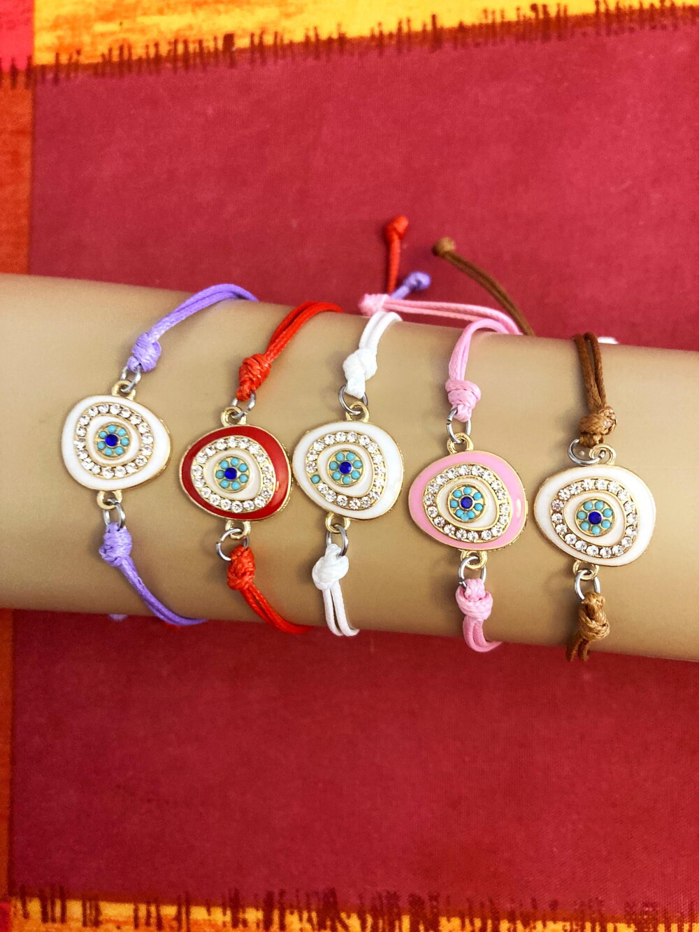 Bracelet porte bonheur, grec, émaillé tendance cordon coton couleur au choix réglable délicat tendance Bijou homme ou femme