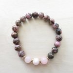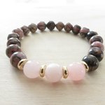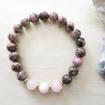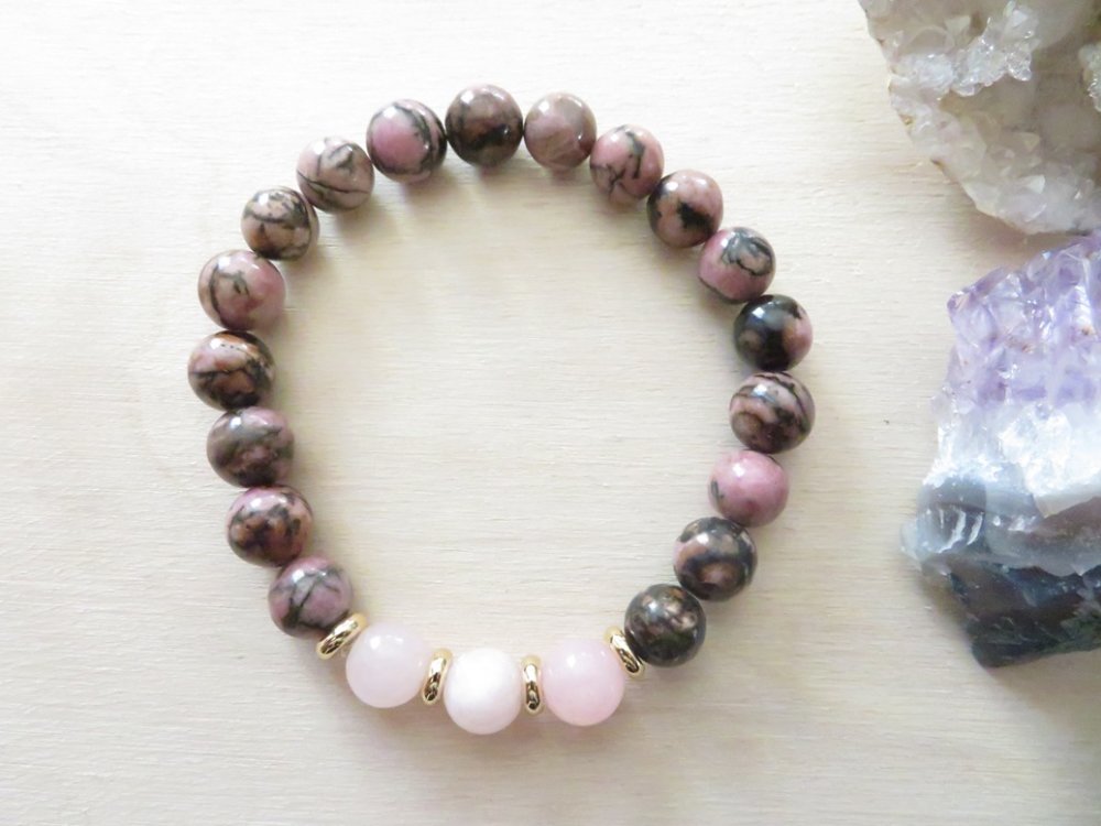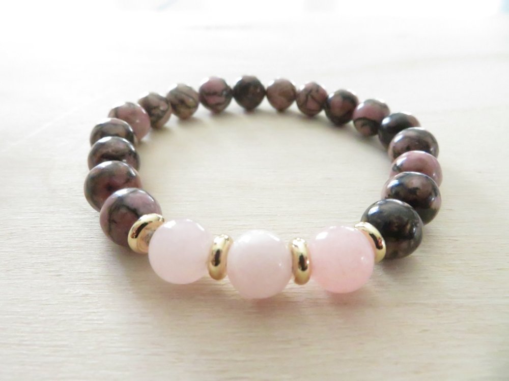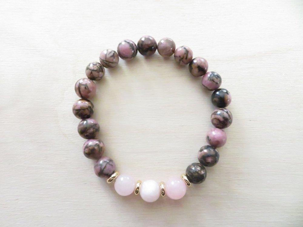 Perles naturelles Rhodonite (rondes 8 mm), Perles naturelles Morganite rose (rondes 8 mm), Entretoises en acier inoxydable