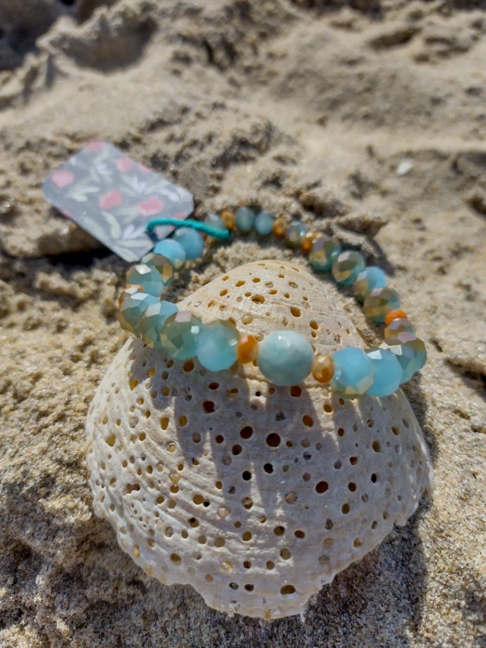 Les perles en verre apportent une touche délicate et lumineuse, comme un reflet d’eau claire au soleil ☀️💎