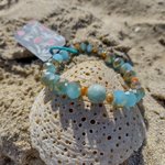 Bracelet élastique de 16 cm composé d’une apaisante amazonite accompagnée de perles en verre lumineuses ✨