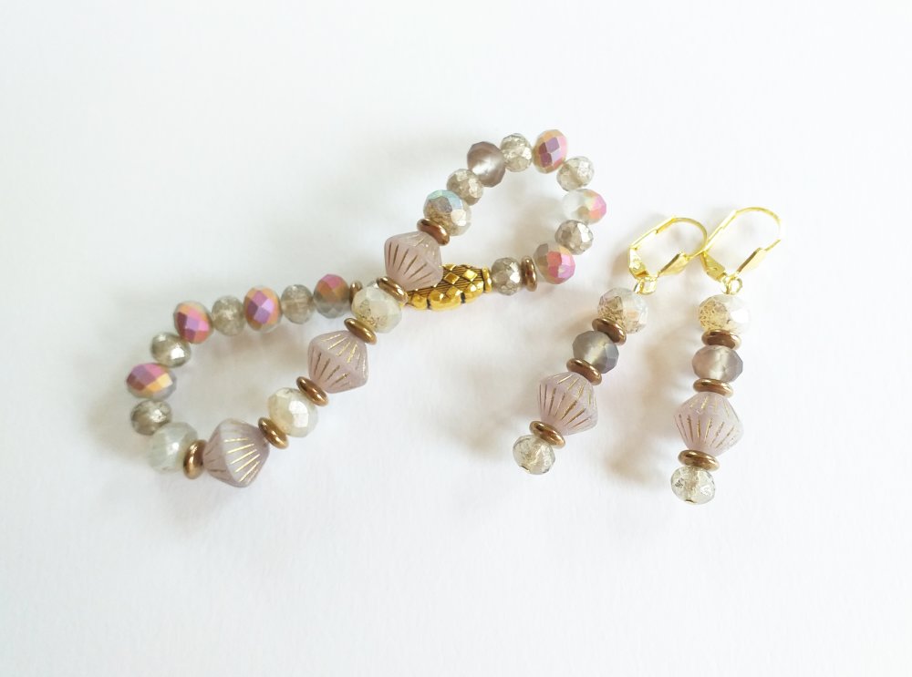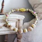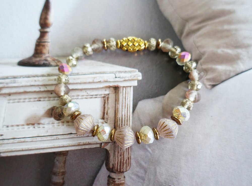 Bracelet Shabby Chic, Bracelet Bohème, Bracelet Perles Tchèques, Bracelet Boho Chic, Bracelet Nude et Or, Accessoire mode Shabby, Bijou Créateur Boho Chic