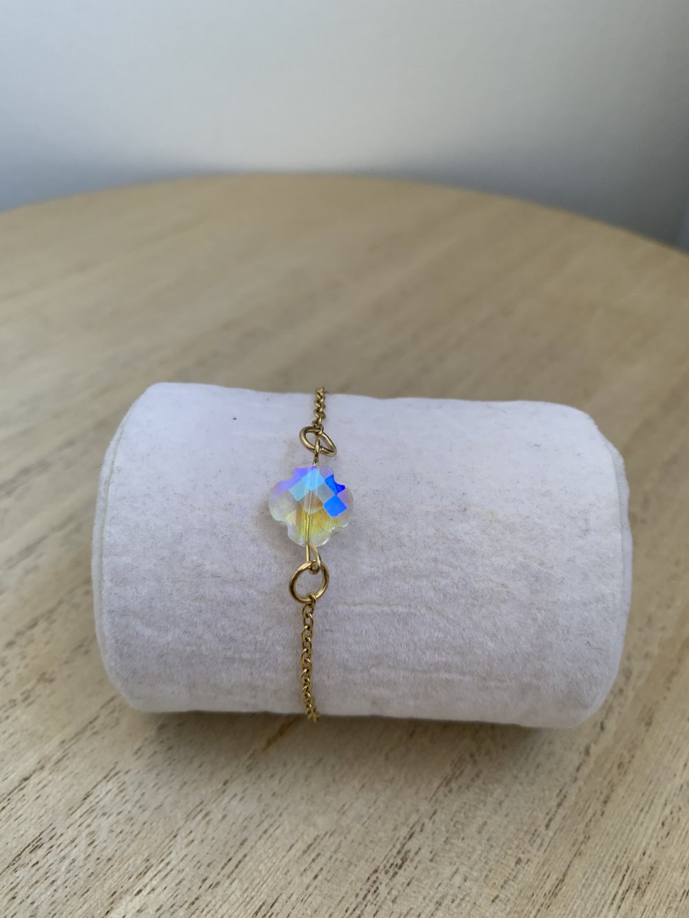 Bracelet trèfle en acier inoxydable. Réglable grâce à sa chaîne d’extension !