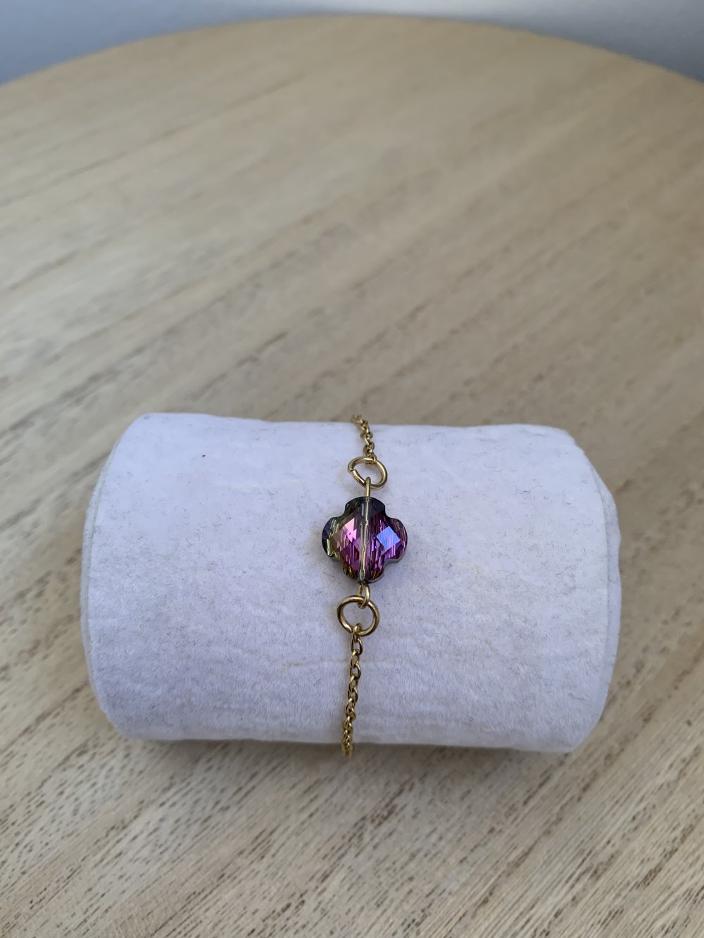 Bracelet trèfle en acier inoxydable. Réglable grâce à sa chaîne d’extension !