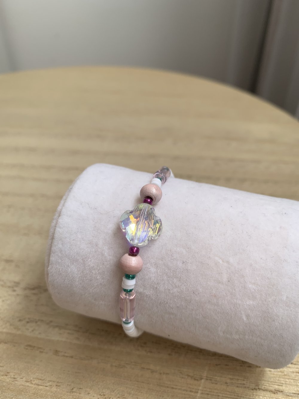Bracelet élastique avec différentes perles.