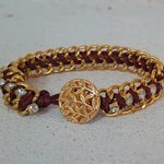 Bracelet chaîne dorée avec cordons strass et cordon bordeaux /rouge , chic , élégant , cadeau femme , original , classique