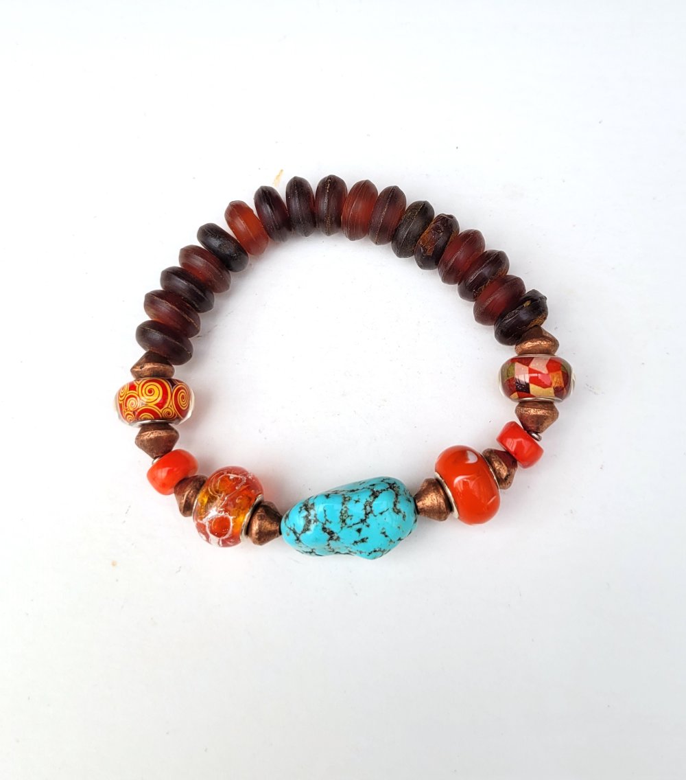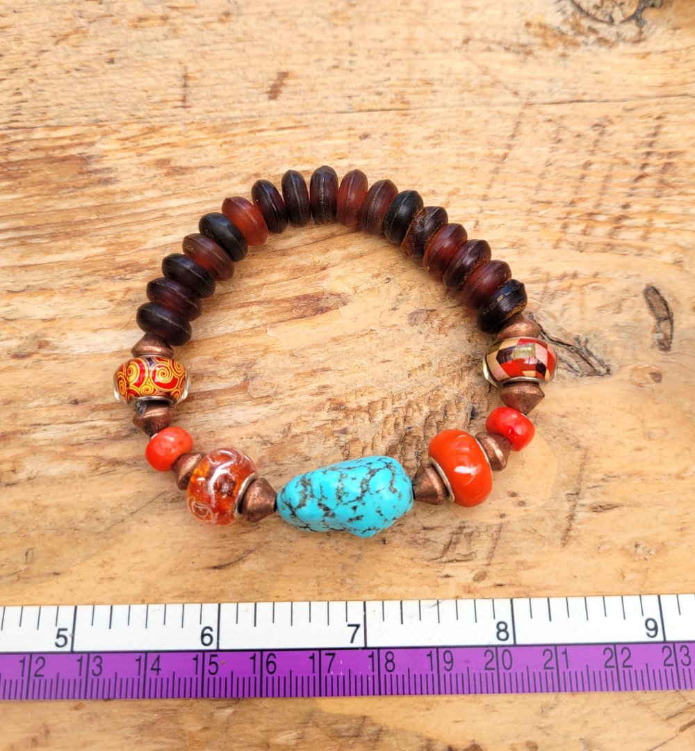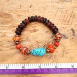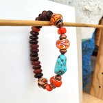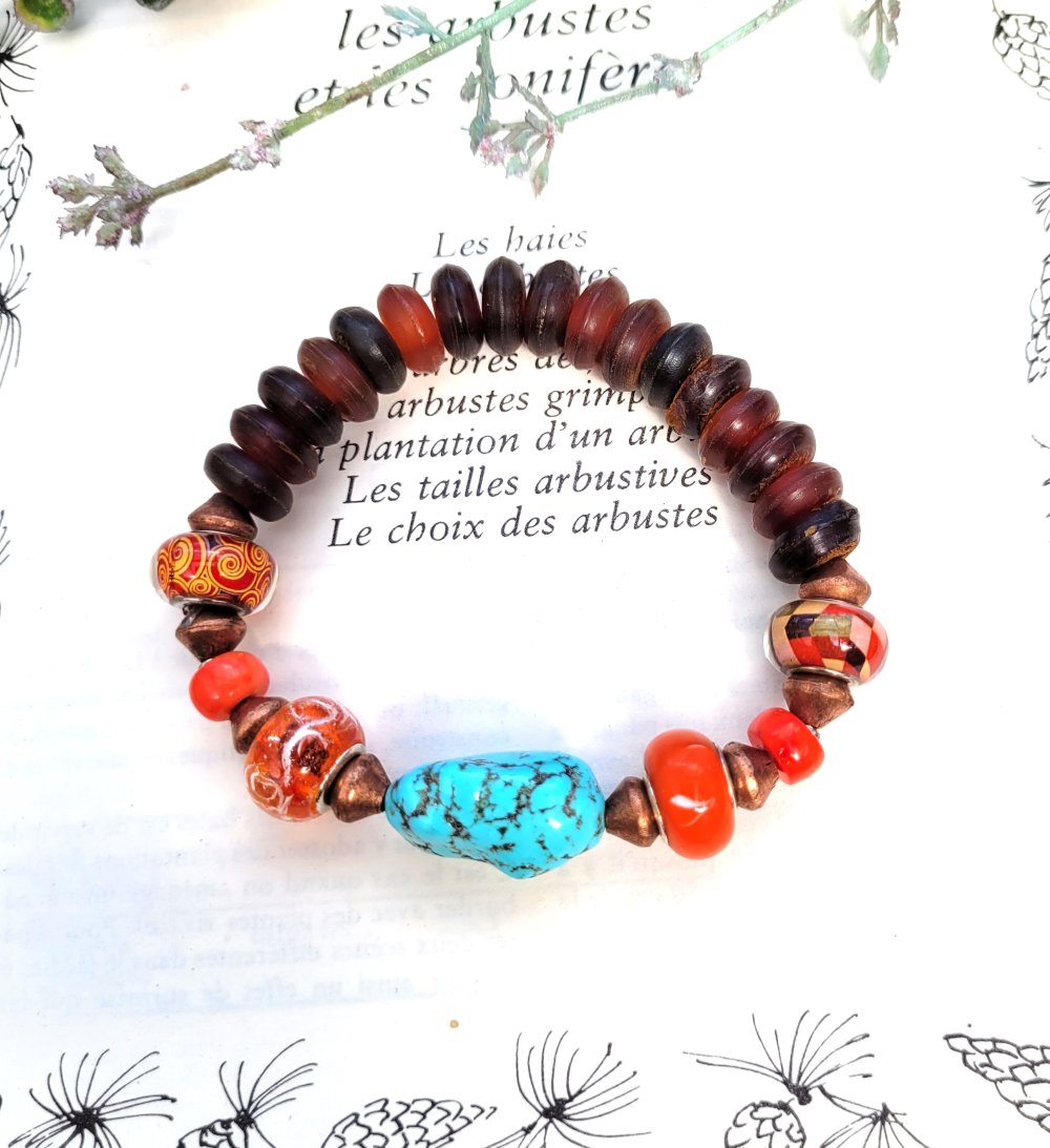 "Chant D' Elégance" : Une belle poésie pour ce bracelet tribal, nomade, unisexe avec perles verre , résine du Mali , nugget turquoise