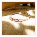 Il est constitué de cristaux de Swarovski® dans un dégradé de rose au fuchsia, de perles de rocaille japonaises en verre Miyuki* tonalité rose du plus clair au plus foncé et dorées, de perles en laiton doré à l'or fin 24 carats, sa mesure INTÉRIEURE = votre tour de poignet est de 17 cm extensible jusqu'à 19 cm grâce à sa chainette d'extension et son mousqueton tous les 2 en acier inoxydable doré*, son poids est de 3 gr.