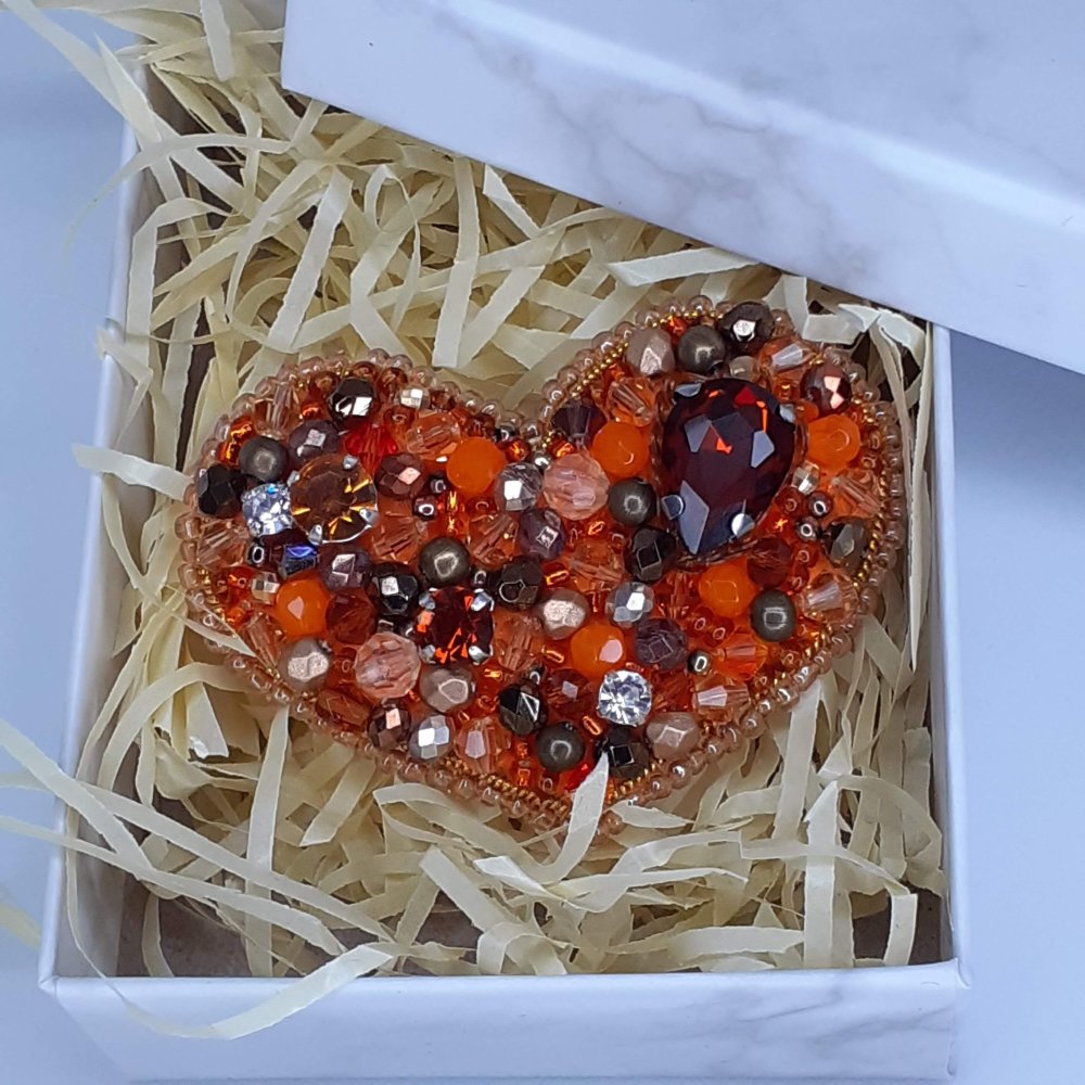Broche cœur ambré