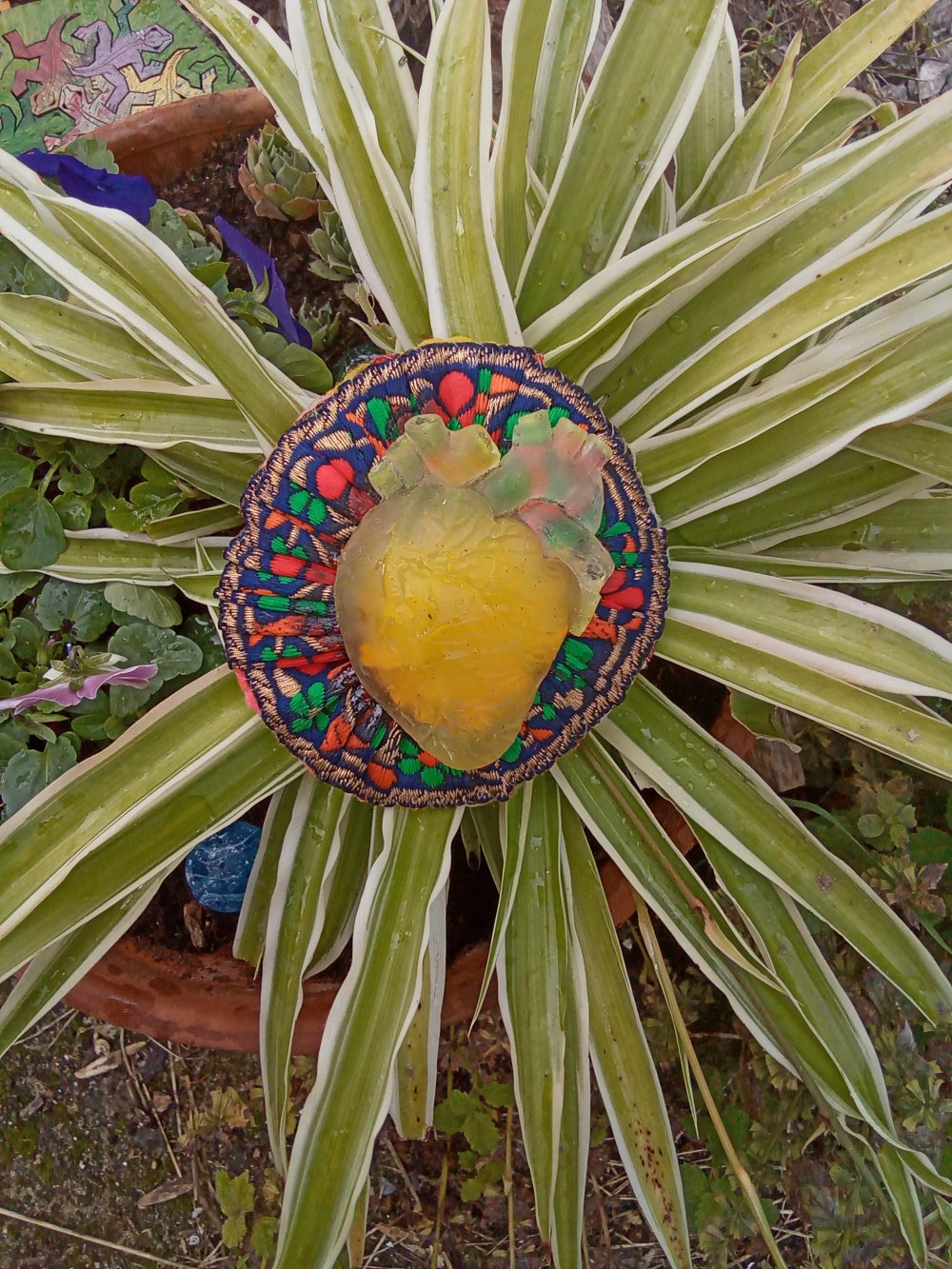 Le coeur est en résine avec un dégradé de jaune fluo!!