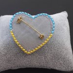 Cette broche aux couleurs du drapeau ukrainien est à porter en soutien à l’Ukraine.