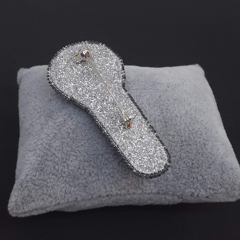 Chaque réalisation est une pièce unique, réalisée avec des perles en verre de grande qualité, des cristaux de Swarovski, des paillettes de Lunéville et des strass. Tous ces éléments font de chaque broche un bijou.