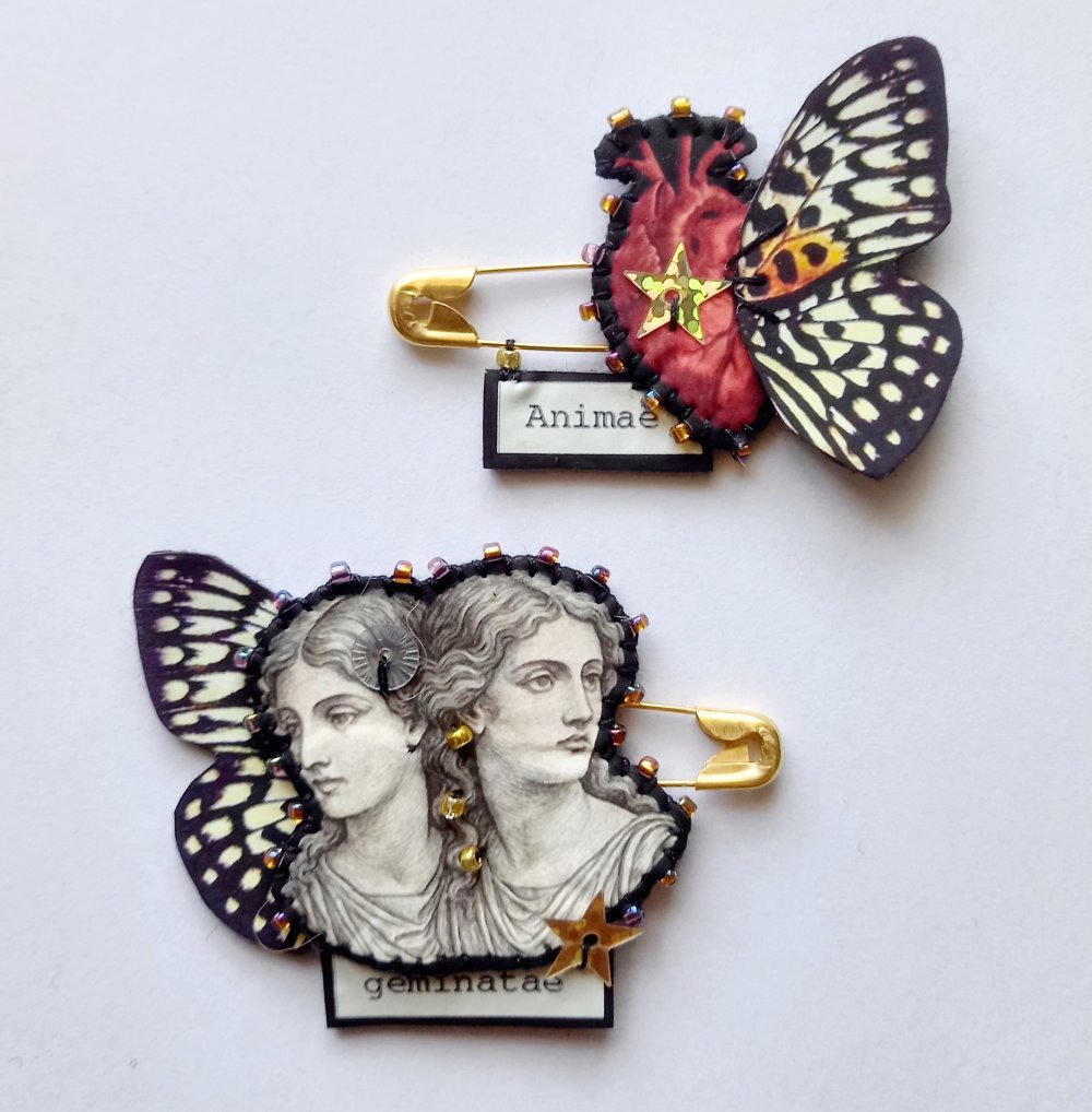 Lot 2 broches à porter ensemble ou séparemment. Transfert textile haute résistance sur feutre.