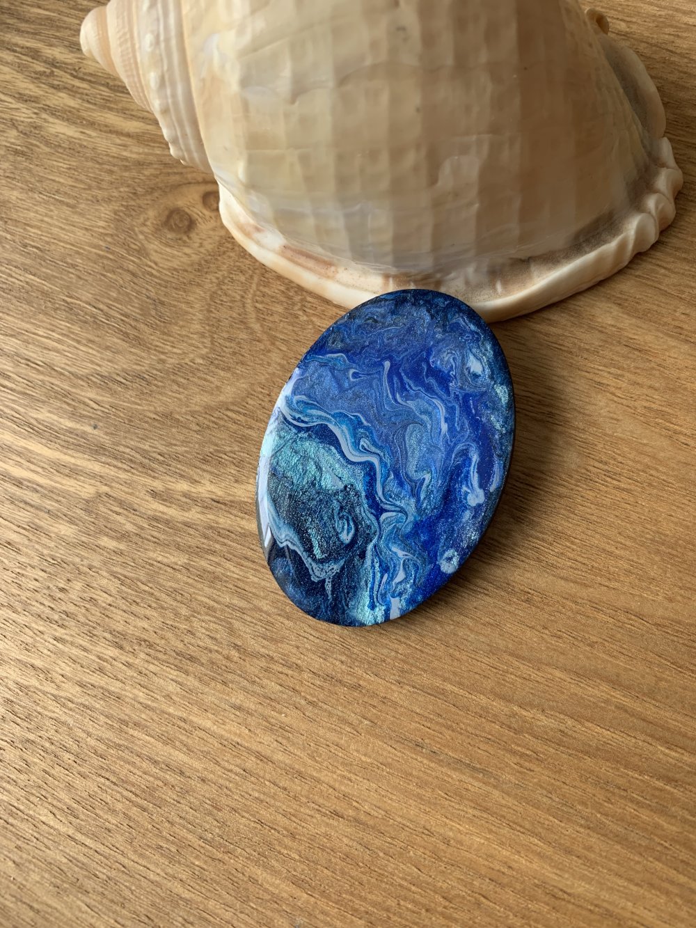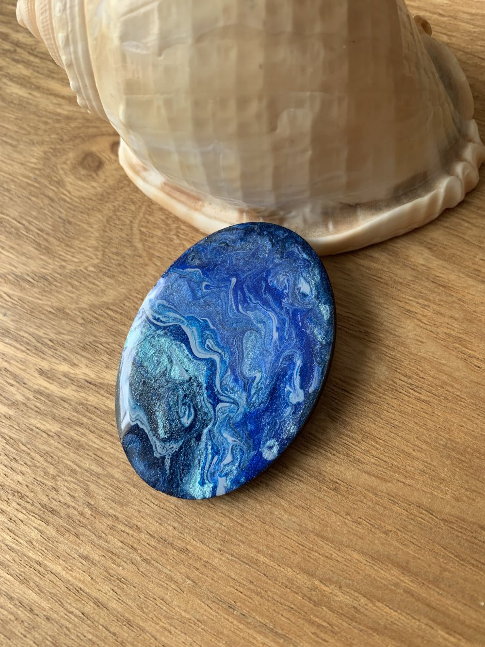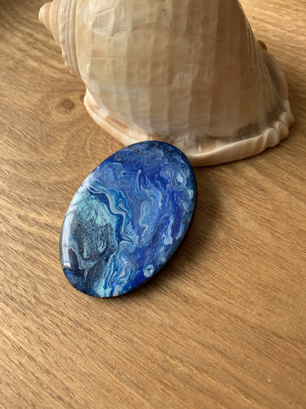 Grand cabochon fait main en bois résine 50x35 mm