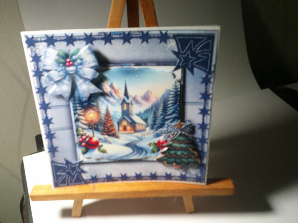 carte 3d, paysage en hiver (noel), double, faite main, modèle unique, forme carrée, 13x13
