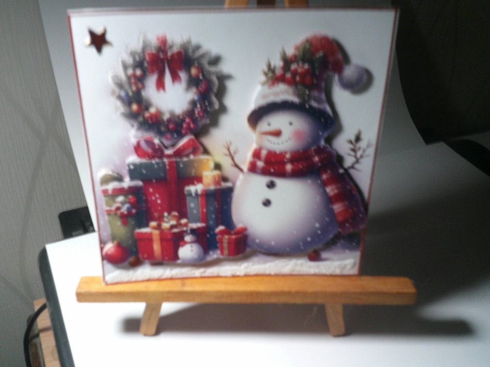 carte 3d, père noel, bonhommes de neige, lutins, double, faite main, modèle unique, forme carrée 14x14