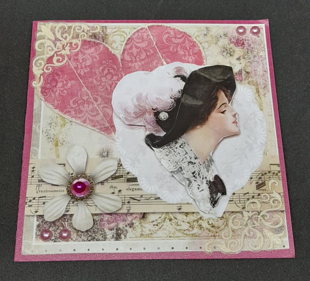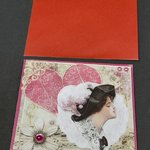 Offrez un instant de poésie avec cette carte pour une preuve d'amour réalisée à la main. Sur un fond bordeaux délicatement décoré, par la tête d'une femme, les éléments en relief ajoutent profondeur et douceur, créant une scène chaleureuse.