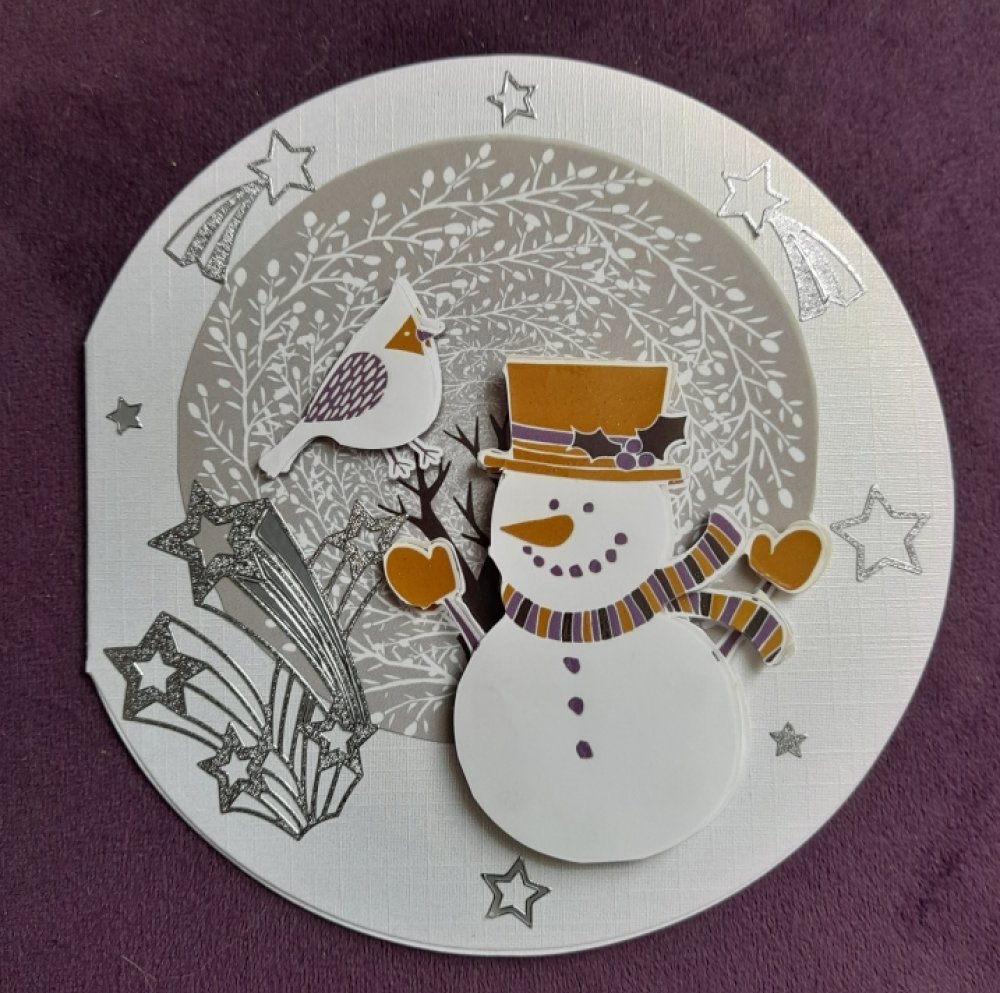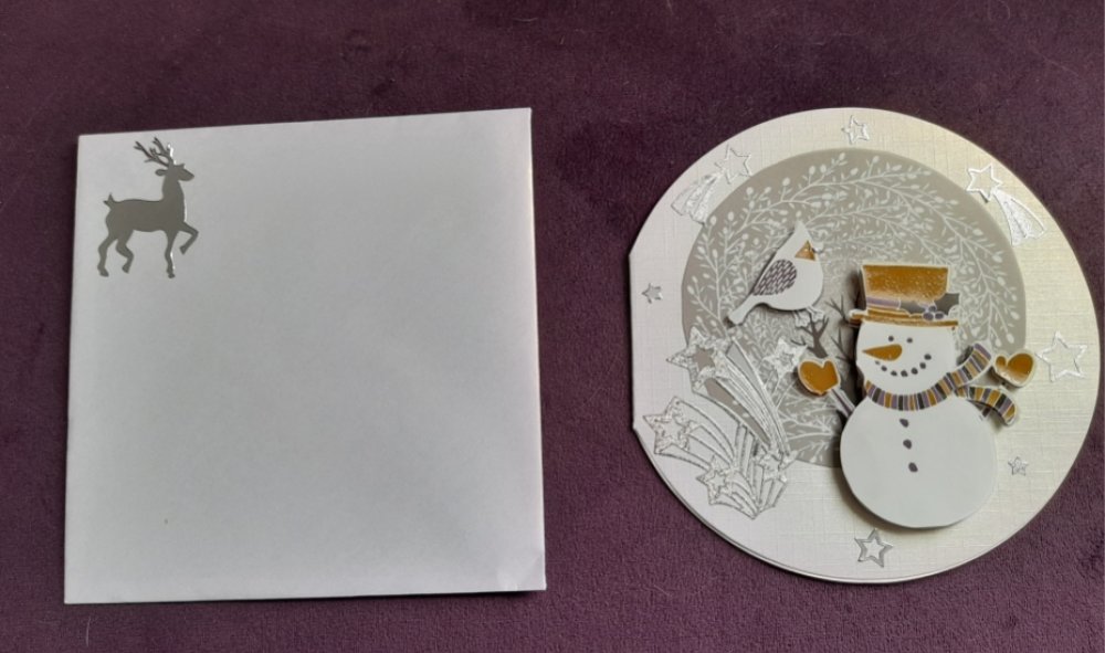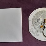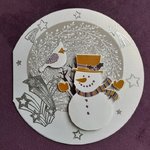 Offrez un instant de poésie avec cette carte pour Noël réalisée à la main. Sur un fond blanc délicatement décoré, un bonhomme de neige joue avec un oiseau. Les éléments en relief ajoutent profondeur et douceur, créant une scène chaleureuse.