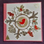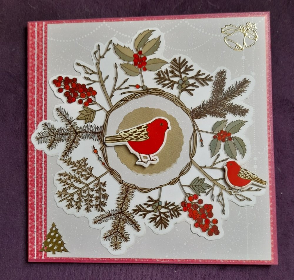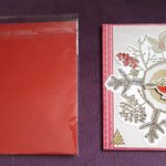 Offrez un instant de poésie avec cette carte pour Noël réalisée à la main. Sur un fond rouge délicatement décoré, un petit oiseau cherche de la nourriture. Les éléments en relief ajoutent profondeur et douceur, créant une scène chaleureuse.