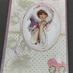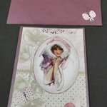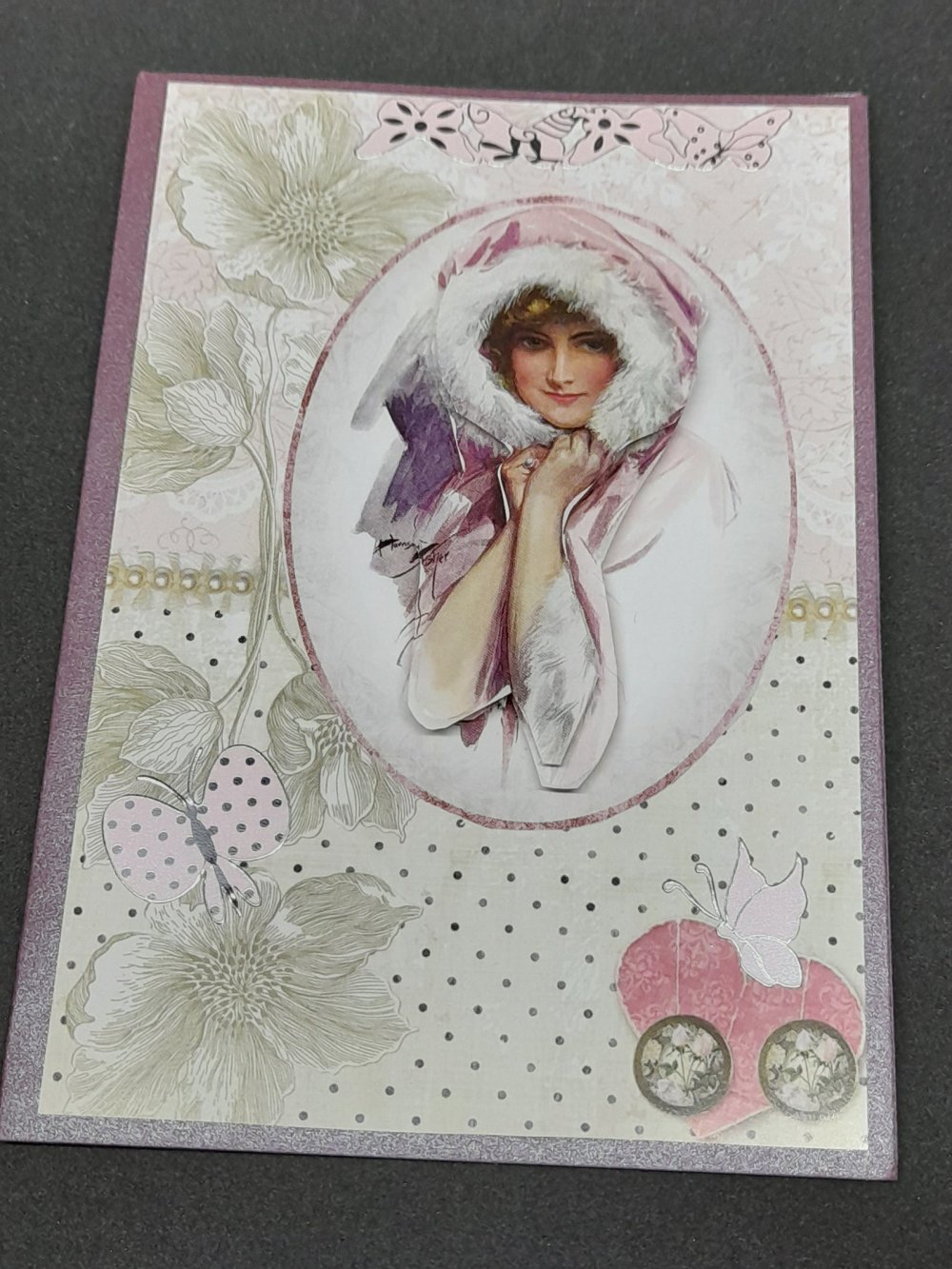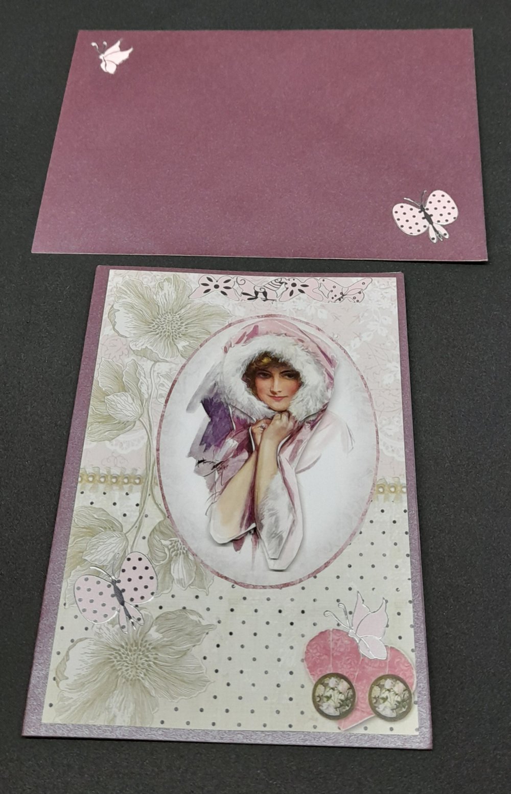 Offrez un instant de poésie avec cette carte romantique réalisée à la main. Sur un fond violet délicatement décoré, se tient une femme. Les éléments en relief ajoutent profondeur et douceur, créant une scène chaleureuse.