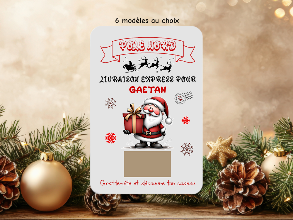 🎄 Petits et grands vont adorer gratter pour découvrir leur surprise de Noël ! 6 modèles de cartes Père Noël au choix, pleines de magie et de bonne humeur