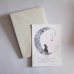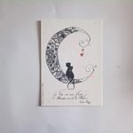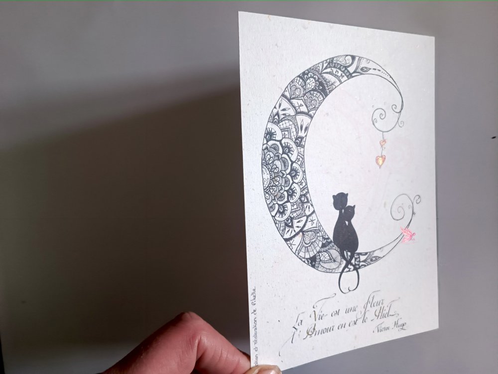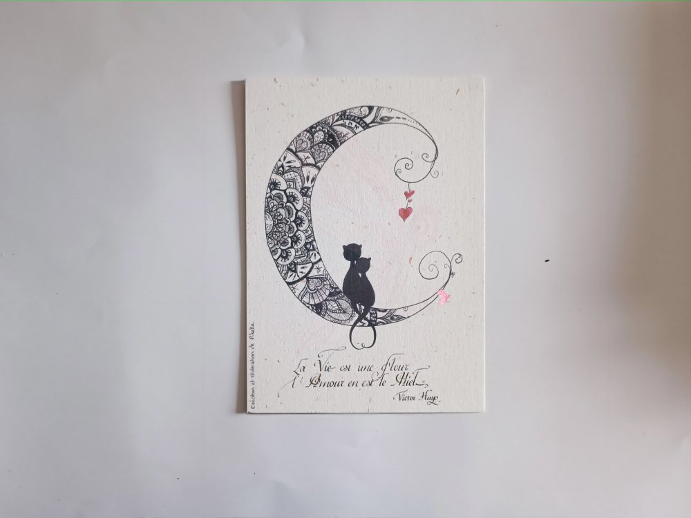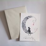 carte amour chat lune maori - faite main dorée en relief à la plume d'oie