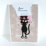 Carte de voeux à offrir pour l'anniversaire d'un enfant ou d'un adulte qui aime les chats.