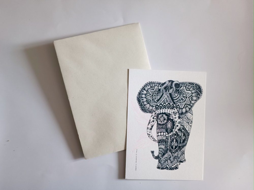carte sur papier recyclé dorée en relief à la plume d'oie avec son enveloppe