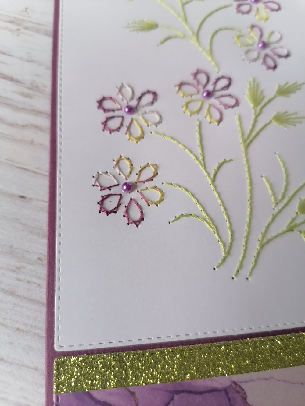 Carte brodée fleurs