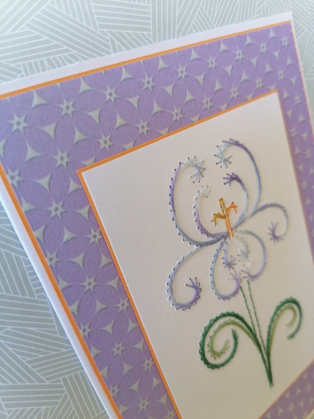 Carte brodée main, iris