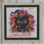Carte chat multicolore halloween horrifié, fond noir et vert fait main Ajout au panier