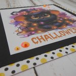 Carte chat halloween guirlande orange et violet, fond noir et orange fait main Ajout au panier