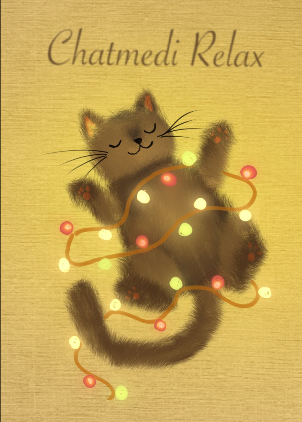 Laissez entrer un soupçon de douceur et une bonne dose de relaxation dans votre déco grâce à cette illustration « Chatmedi Relax ».