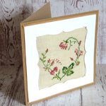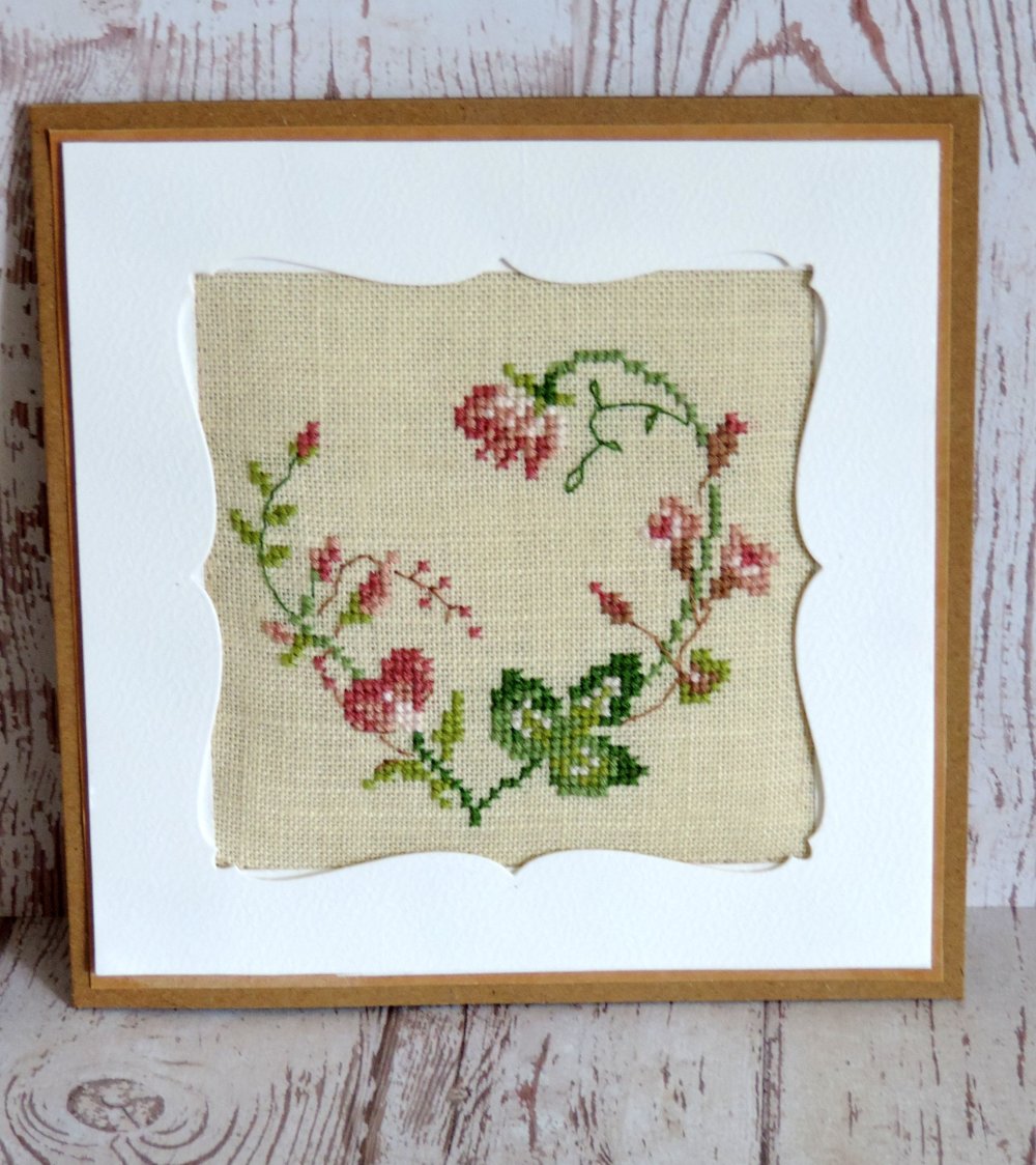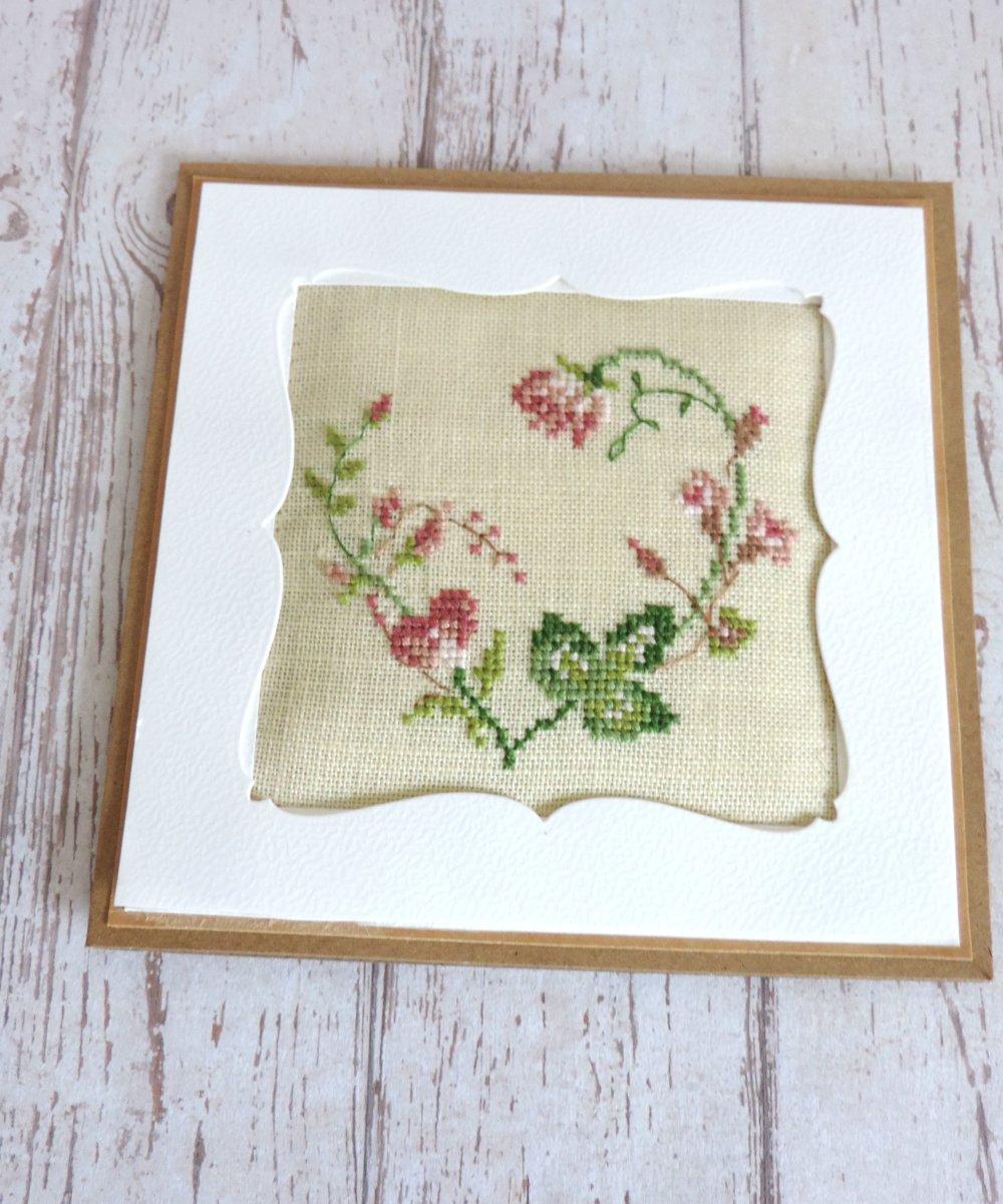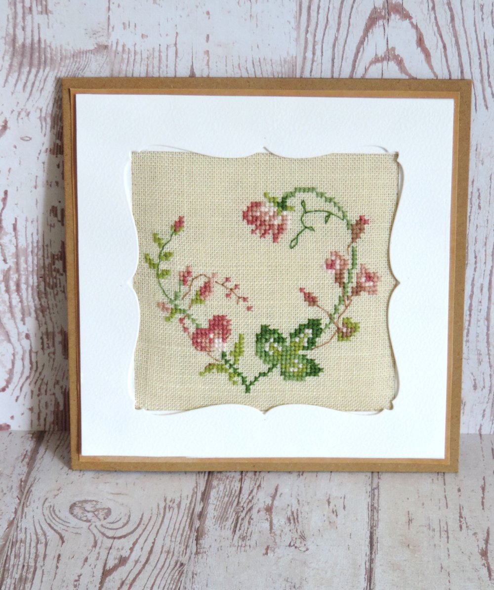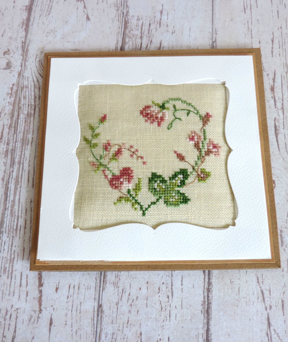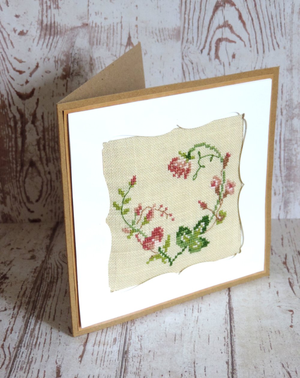 Carte de voeux brodée, point de croix, coeur brodé, fait main