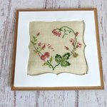 Broderie de ce joli coeur au point de croix sur une toile de lin couleur ivoire.
