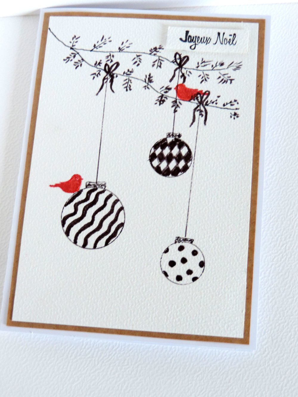 Carte de voeux à offrir pour Noël avec motif dessiné main à l'encre noire.