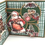 A l'intérieur, lorsque que l'on ouvre un pop-up ouvre trois cercles décorées d'un père Noël aux cadeaux, de cadeaux et d'un sapin. A dominance verte cette carte es livrée avec une enveloppe assortie.