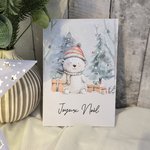 Une carte blanche et dorée au format 11 x 16,5 cm, douce et élégante Fait main dans les Vosges, ce modèle raffiné sublime les vœux de Noël avec délicatesse
