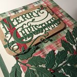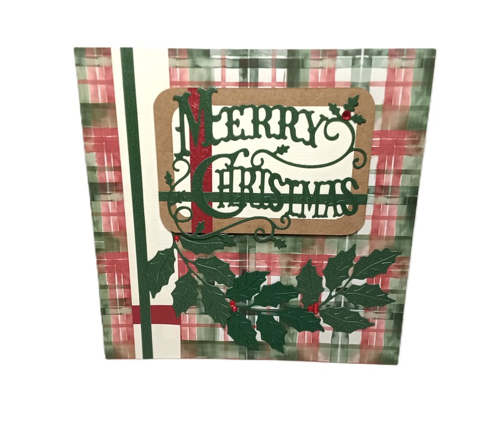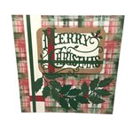 Carte "Merry Christmas" (Joyeux Noël) Traditionnelle avec son fond à carreaux vert et rouge.